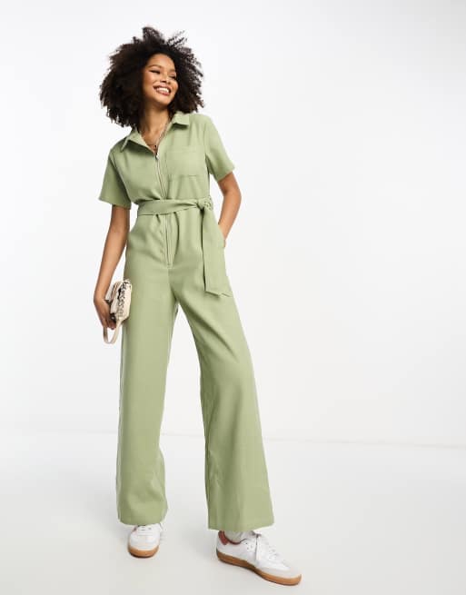Lola May - Utility-jumpsuit met rits in kaki