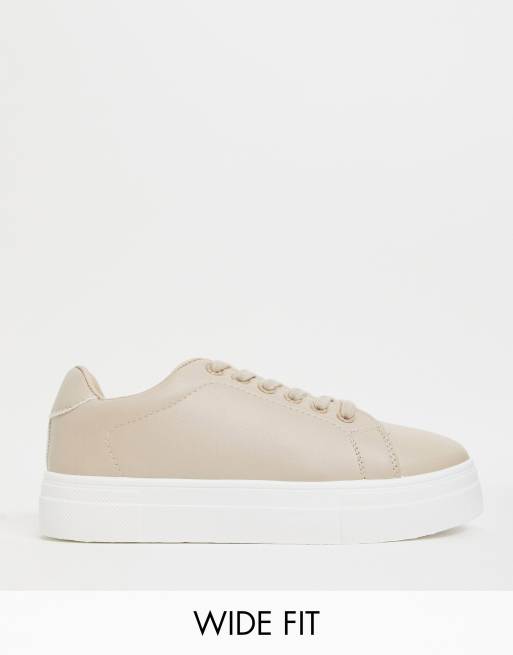 London Rebel - Sneakers met veters, plateauzool en brede pasvorm in beige