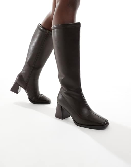 London Rebel - Isla - Knielaarzen met blokhak en brede pasvorm in chocoladebruin