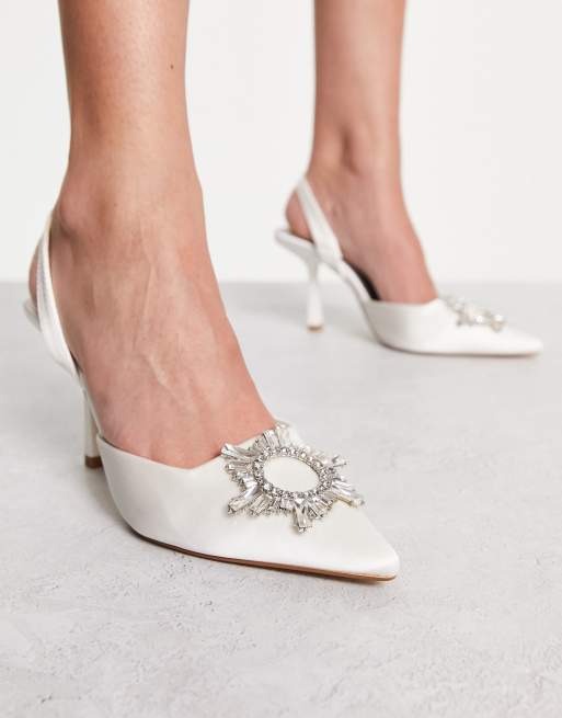 London Rebel - Bruidskleding - Schoenen met hak en slingback-bandje in ivoorwit satijn