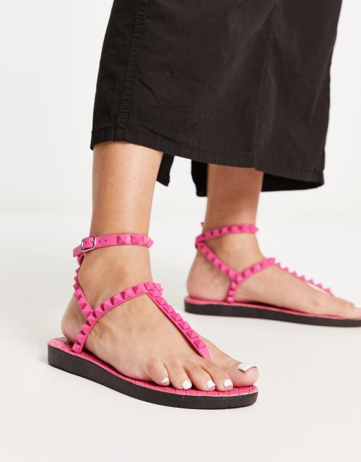 London Rebel - Jelly teensandalen met studs en enkelbandje in roze