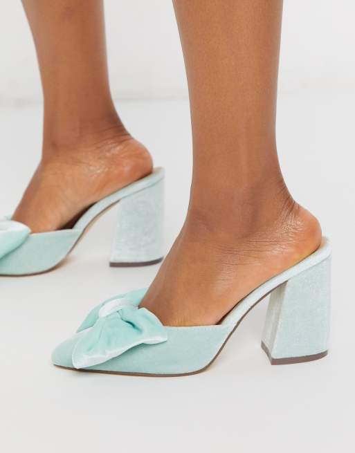 London Rebel - Muiltjes met strik en hak in muntgroen