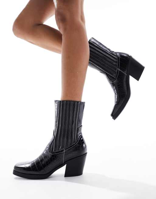 London Rebel - Westernlaarzen in zwarte krokodillenprint