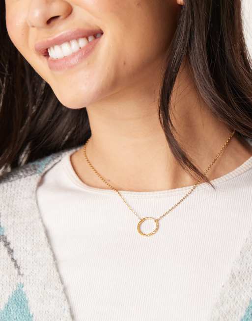 Lost Souls - 18k vergulde ketting met gehamerd cirkelvormig hangertje van roestvrij staal