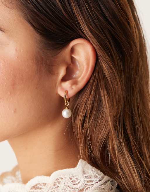 Lost Souls - 18k vergulde kleine oorringen van roestvrij staal met parelhangertje