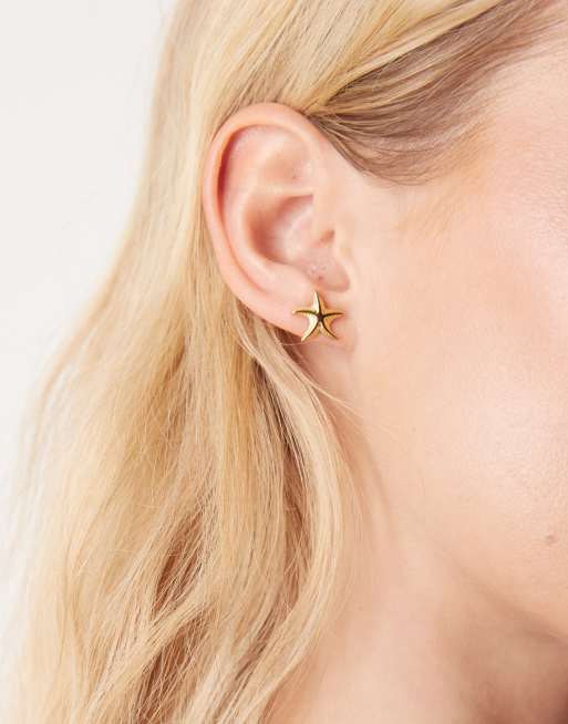 Lost Souls - 18k vergulde oorknopjes met zeesterren van roestvrij staal