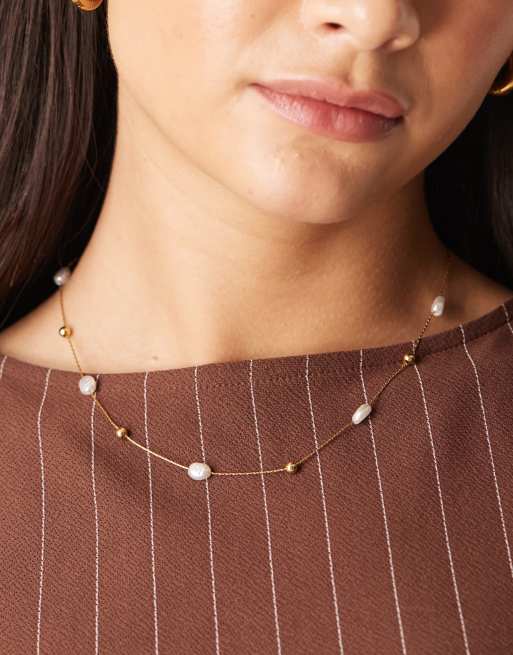 Lost Souls - Choker ketting van roestvrij staal verguld met 18k goud met parelhangertjes