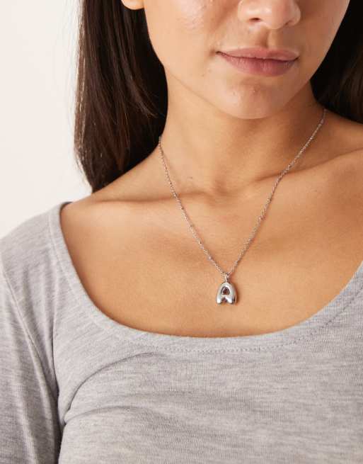 Lost Souls - Ketting met bolle A-initiaal van roestvrij staal in zilver