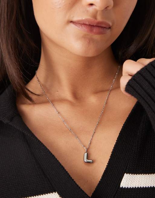Lost Souls - Ketting met bolle L-initiaal van roestvrij staal in zilver