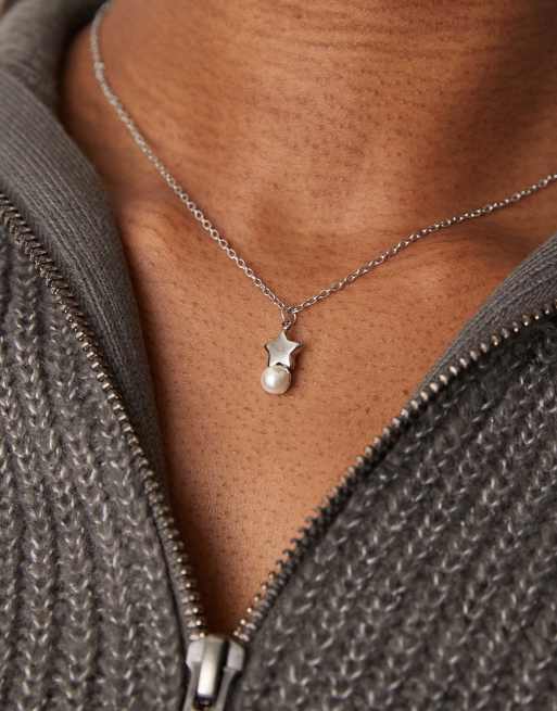 Lost Souls - Ketting van roestvrij staal met ster- en parelhangertje in zilver