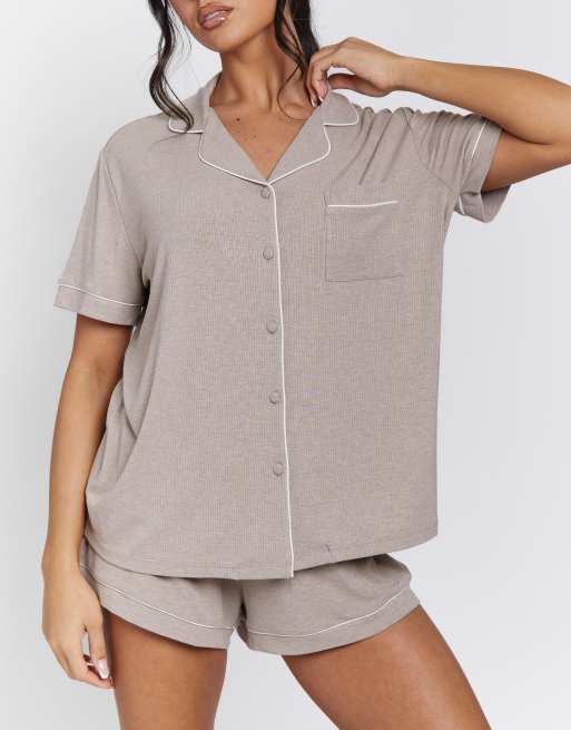 Loungeable - Ladies - Traditionele pyjamaset met short in havermout