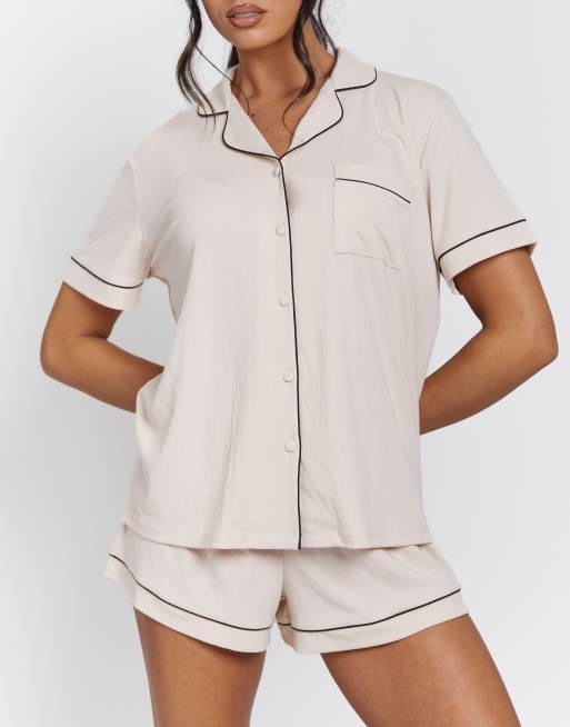 Loungeable - Ladies - Traditionele pyjamaset met short in vanille