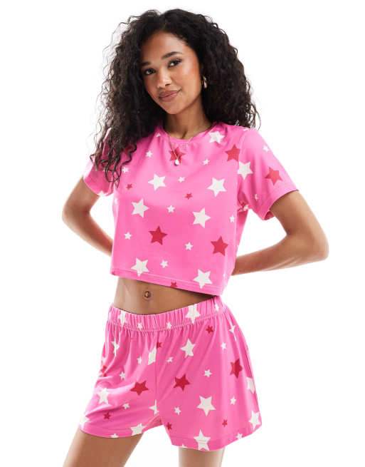 Loungeable - Pyjamaset van cropped T-shirt en short met sterprint
