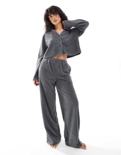 Loungeable - Zachte pluizige rechte broek in grijs
