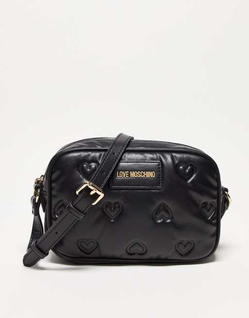 Love Moschino - Crossbody tas met doorgestikte hartjes in zwart