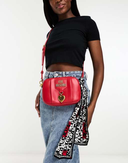 Love Moschino - Mini crossbody tas met sjaal en hangertje in rood