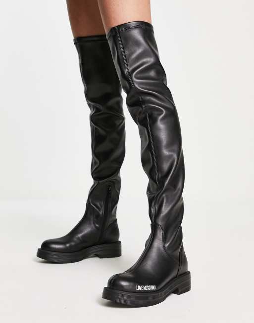 Love Moschino - Over-de-knie-laarzen met logo in zwart