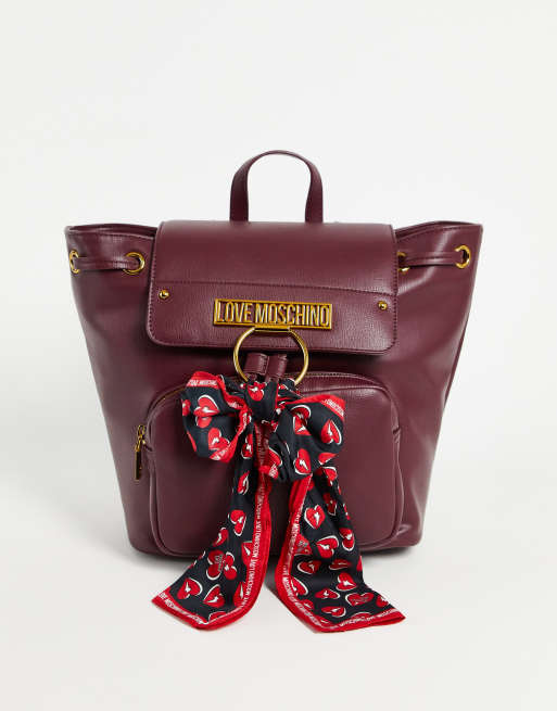Love Moschino - Rugzak met sjaaltje in donkerrood