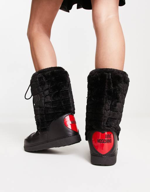 Love Moschino - Snowboots met logo en imitatiebont met patroon in zwart