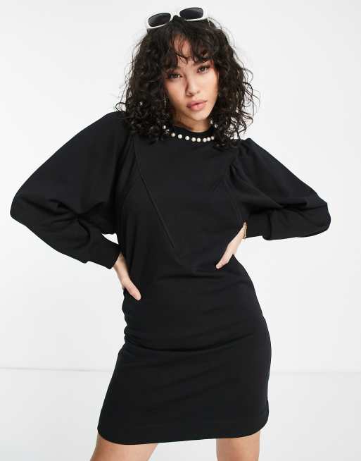 Love Moschino - Sweatshirtjurk met detail met siersteentjes in zwart