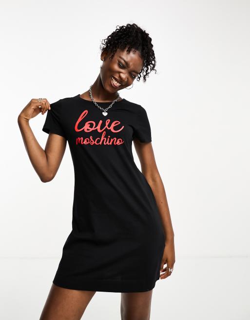 Love Moschino - T-shirtjurk met cursief logo in zwart