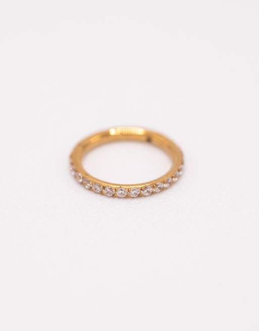 Lovisa - Fijne pavé ring van verguld titanium met kliksluiting en zirkonia-steentjes in goud
