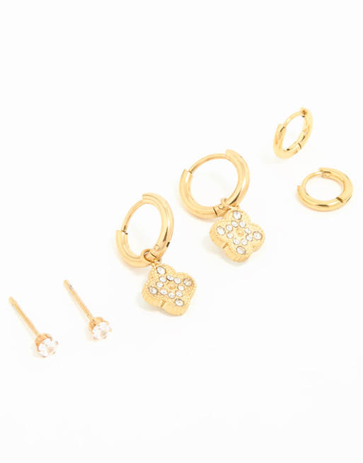 Lovisa - Set van 3 paar vergulde oorringen met bloem van waterbestendig roestvrij staal in goud