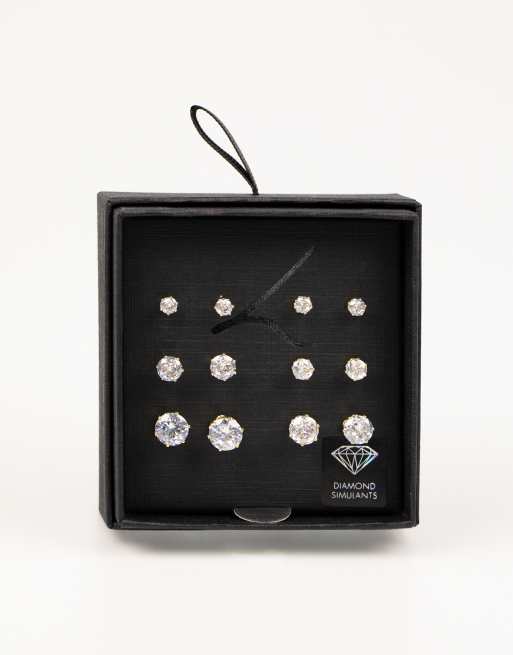 Lovisa - Set van 6 paar klassieke ronde oorbellen met zirkonia in goudkleur