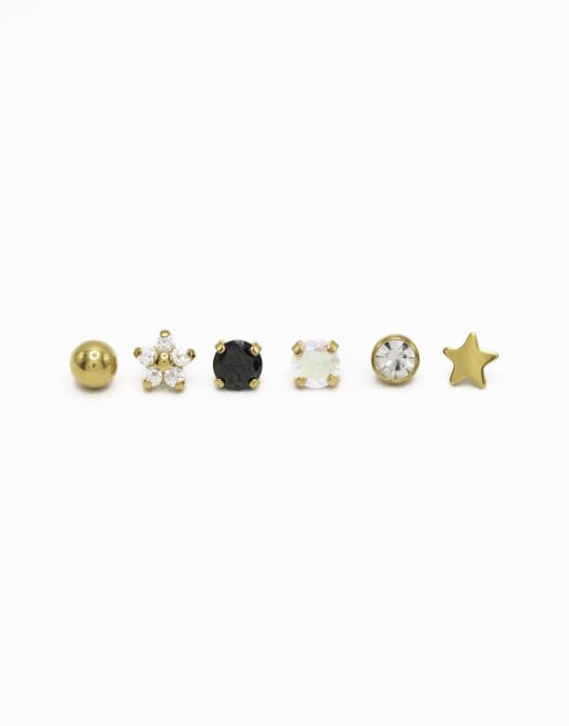 Lovisa - Set van 6 vergulde mooie piercings van titanium met platte achterkant in goud
