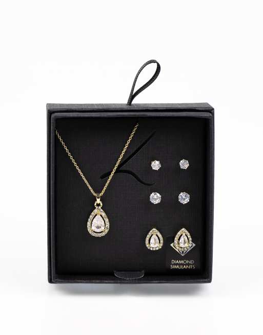 Lovisa - Set van ketting en oorbellen met siersteentjes en parels in bloemvorm in goud