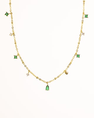 Lovisa - Vergulde ketting met fijne zirkonia- en smaragdgroene steentjes in goud