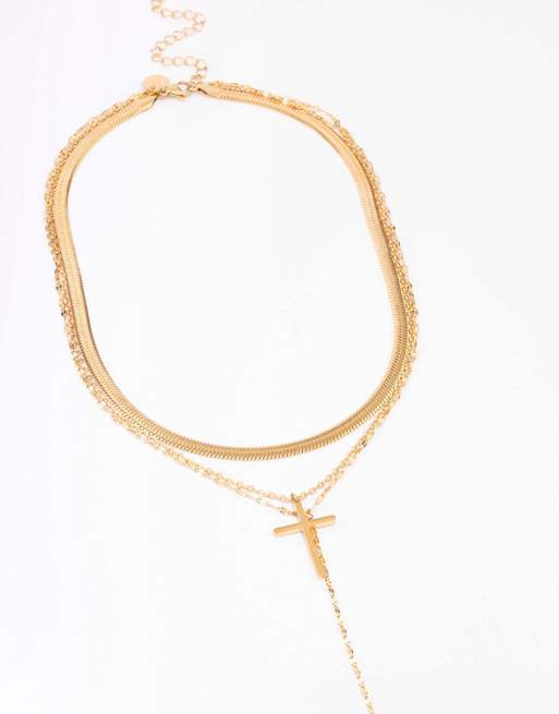 Lovisa - Vergulde ketting met meerdere rijen van waterbestendig roestvrij staal met kruisje in goud