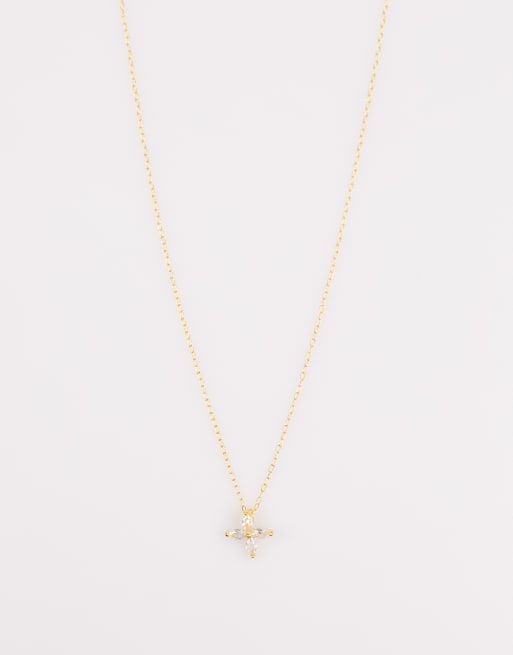 Lovisa - Vergulde ketting van echt zilver met bloemhangertje met marquise zirkoniasteentjes in goud