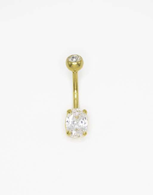 Lovisa - Vergulde navelpiercing van titanium met klassieke ronde zirkonia steentjes in goud
