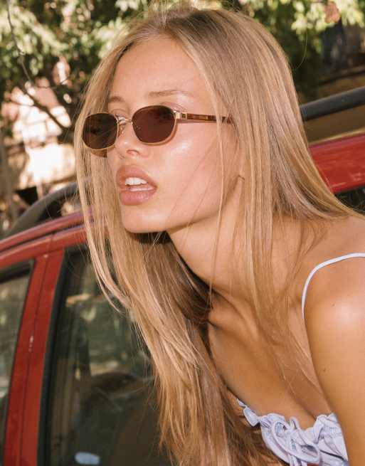 Lu Goldie - Lara - Zonnebril van metaal met ovaal montuur in kastanjebruin