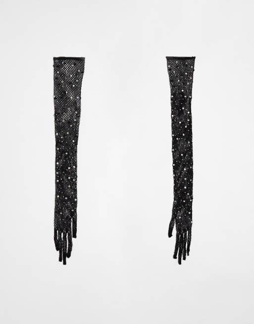 Madein. - Lange handschoenen met siersteentjes in zwart
