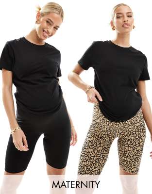Mamalicious - Set van 2 leggingshorts in zwart en luipaardprint