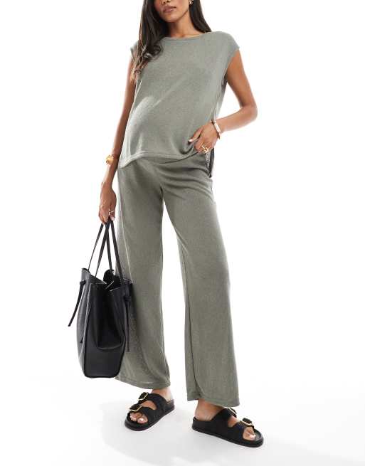 Mamalicious - Zwangerschapskleding - Gebreide broek met wijde pijpen in kaki, deel van co-ord set