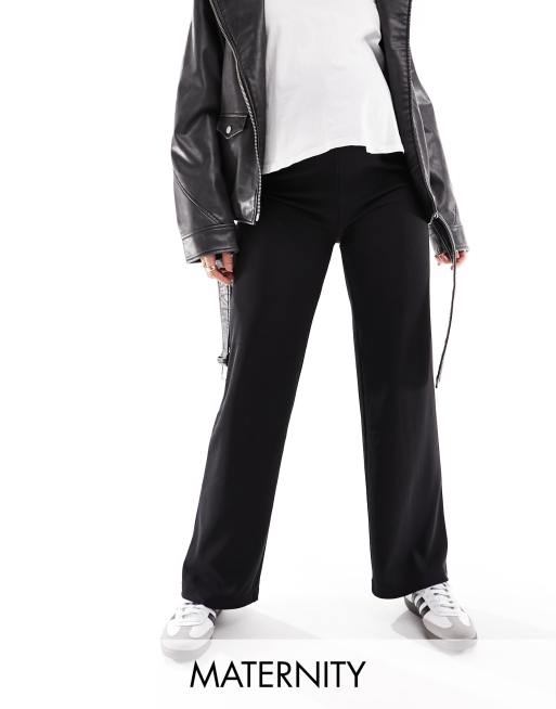 Mamalicious - Zwangerschapskleding - Geribbelde broek met wijde pijpen en buikband in zwart