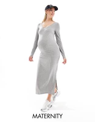 Mamalicious - Zwangerschapskleding - Maxi jurk met lange mouwen en zijsplitten in grijs