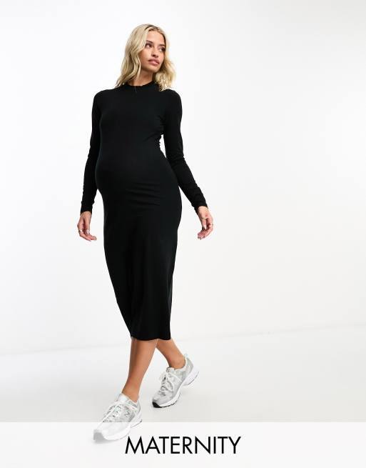 Mamalicious - Zwangerschapskleding - Midi-bodycon jurk van jersey in zwart
