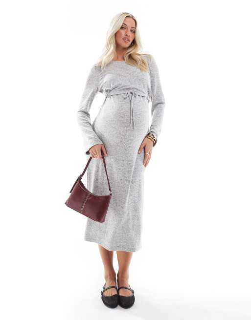 Mamalicious - Zwangerschapskleding - Midi jurk met lange mouwen en borstvoedingsfunctie in gemêleerd lichtgrijs