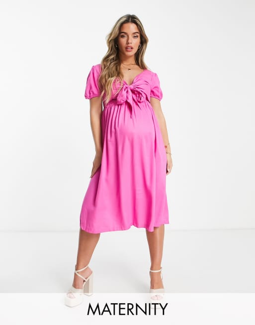 Mamalicious - Zwangerschapskleding - Midi jurk met strikdetail in roze