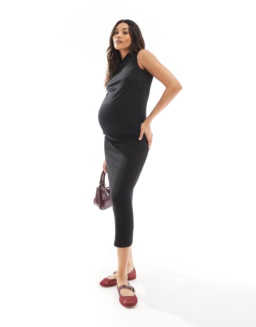 Mamalicious - Zwangerschapskleding - Mix en match - Maxi rok van co-ord set van zachte jersey in zwart