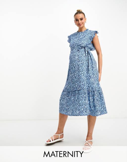 Mamalicious - Zwangerschapskleding - Mouwloze midi-jurk met bloemen en ruches