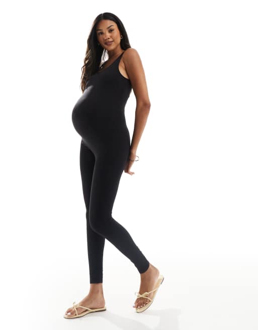 Mamalicious - Zwangerschapskleding - Naadloze mouwloze jumpsuit in zwart