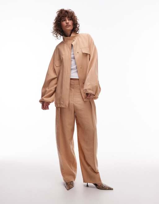 Mango - 3-delige co-ord set met elegante geplooide broek met ballonpijpen, top met ingenomen taille en zacht jack in beige