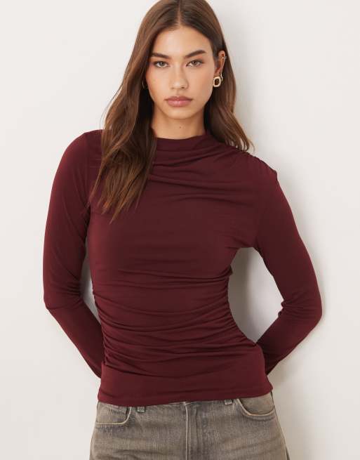 Mango - Asymmetrische top met in bordeauxrood