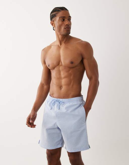 Mango - Boxer-zwemshort van seersuckerstof in pastelblauw