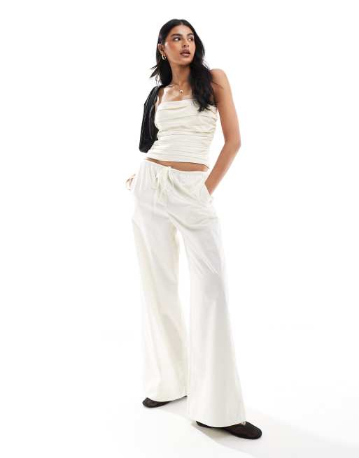Mango - Broek met gestrikte taille in wit, deel van co-ord set